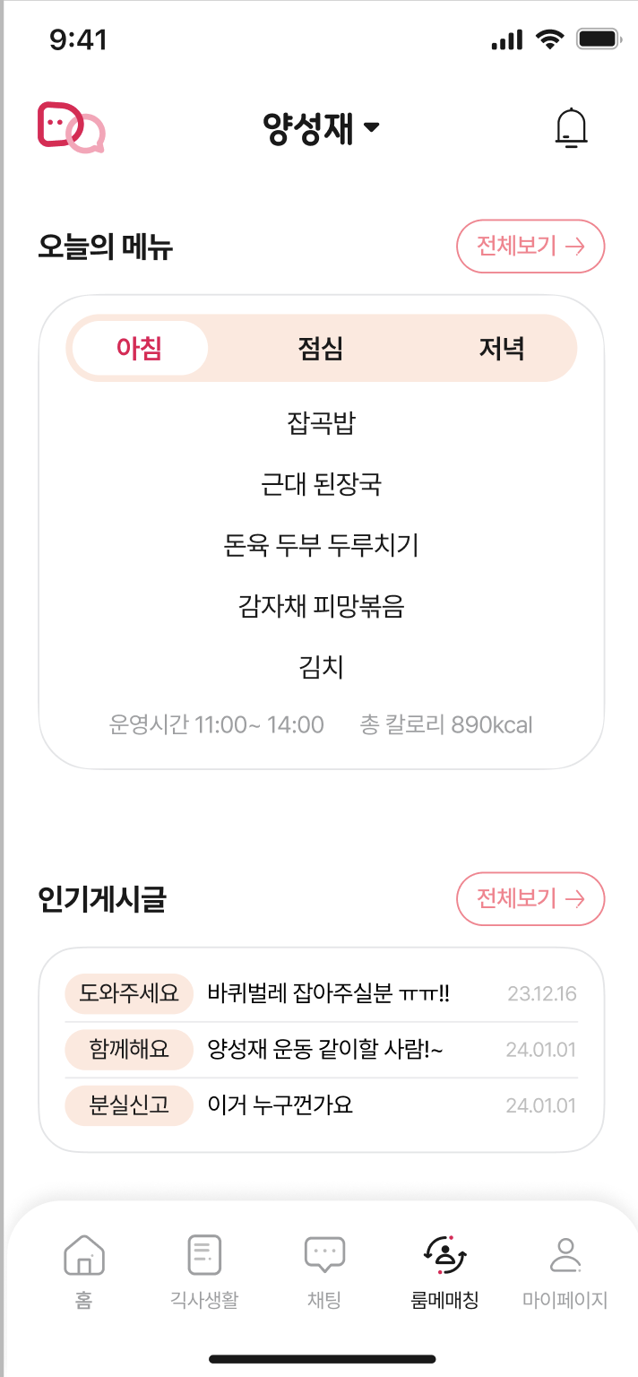 충북대학교 기숙사생들을 위한 플랫폼으로, 비슷한 생활 습관을 가진 사람들을 추천하고, 기숙사 생활에 대한 게시판과 채팅 기능을 제공합니다.